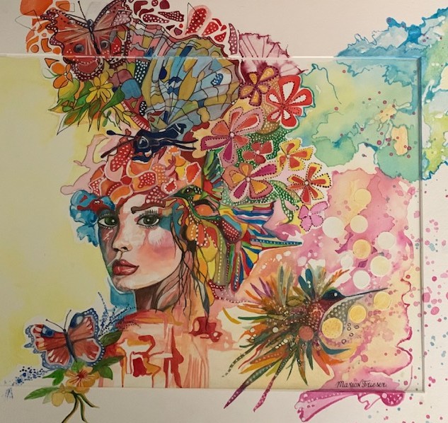Mijn eerste werkstuk betrof 3 Afrikaanse dames, figuratief geschilderd, Voornamelijk op ontdekking naar de mogelijkheden van water, verf en papier. En ik was verkocht.
